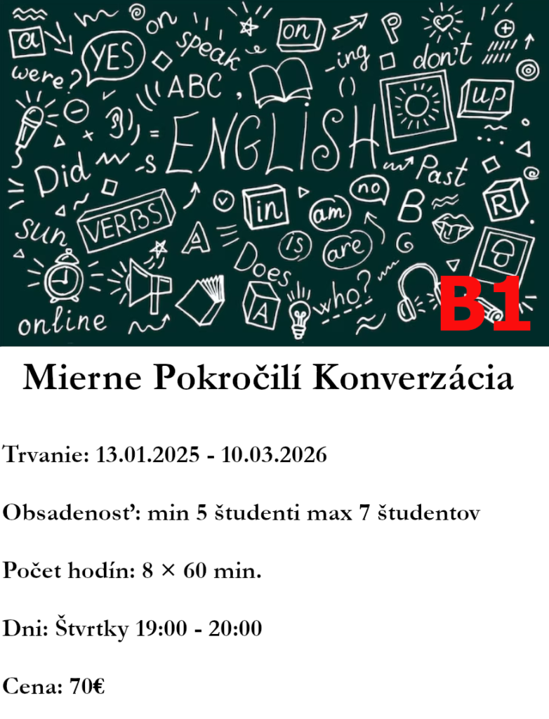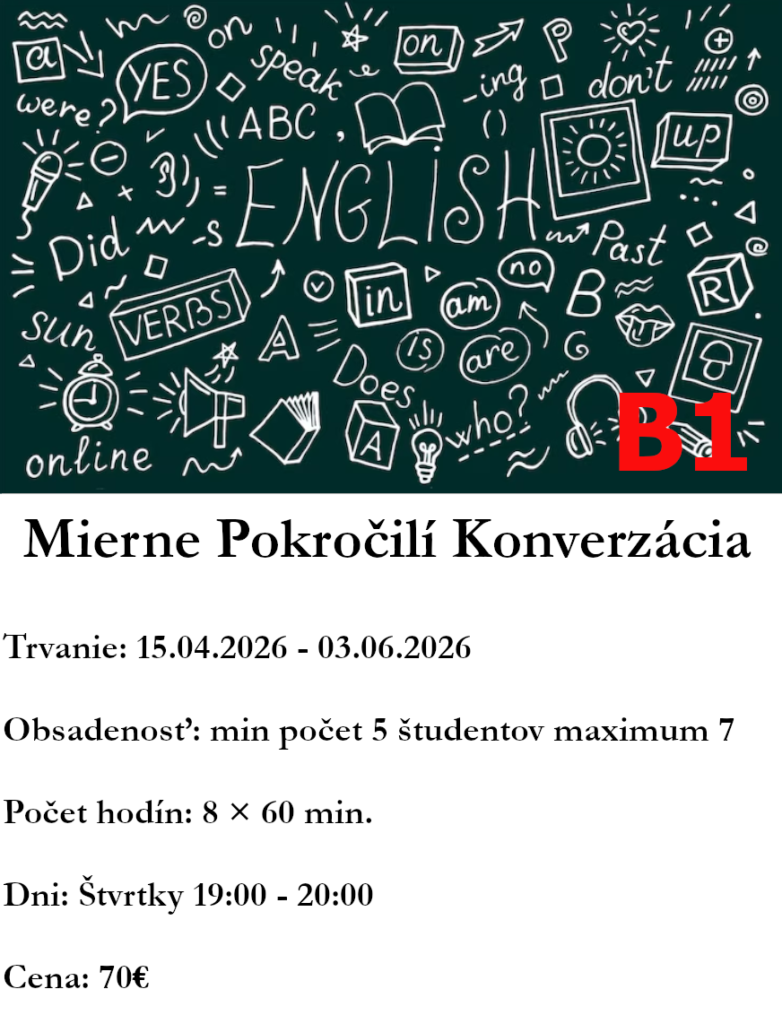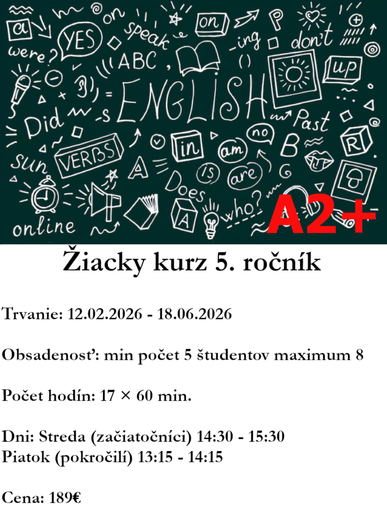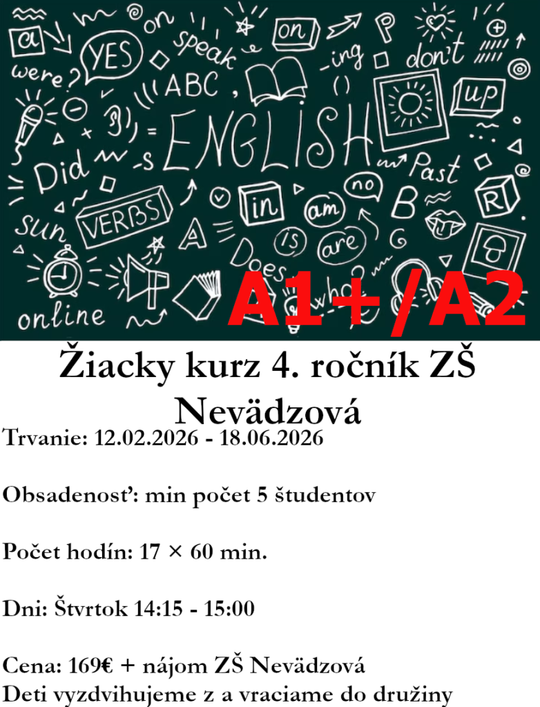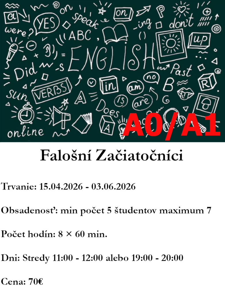 Anglický jazyk sa stal komunikačným jazykom číslo jeden. Z toho dôvodu nezáleží na tom, či cudzí jazyk zamestnanec aktívne používa vo svojej práci. V rôznych formách sa s ním stretávame každý deň a tým aj denne potvrdzujeme jeho potrebu. Ponúkame vám možnosť zdokonaliť sa v jazyku priamo u vás vo firme. Zabezpečíme pre vás: študijné materiály vytvorené podľa Vašich požiadaviek profesionálnych lektorov flexibilné hodiny lekcie pre skupiny, metóda one-to-one Zašlite nám vaše požiadavky a my vám vypracujeme cenovú ponuku. Tešíme sa na spoluprácu.